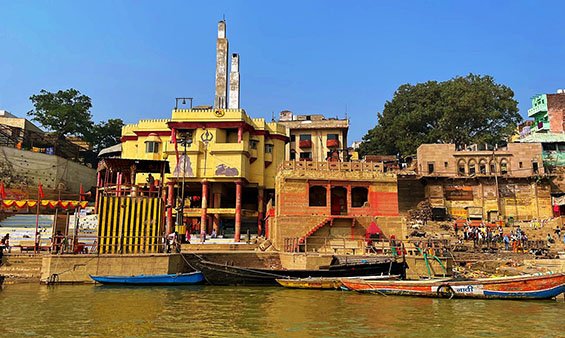 Sacred cremation ghat symbolizing the cycle of life and death.