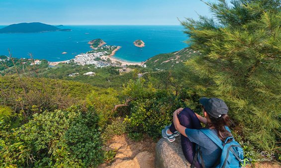 Panoramic views of the Hong Kong skyline, Victoria Harbour, and lush mountains.