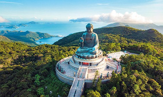 Giant Buddha statue (Tian Tan Buddha) and Po Lin Monastery.