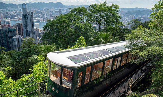 Peak Tram ride offering a unique ascent.
